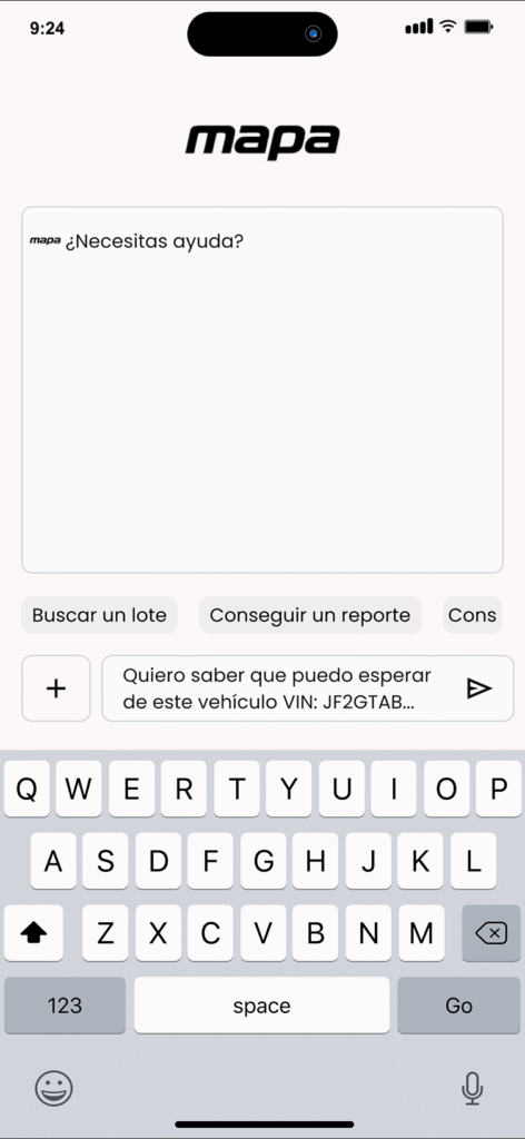 Hazle cualquier pregunta y recibe respuestas claras al instante. Desde términos como salvage, clean o rebuilt hasta consejos para elegir el auto ideal. Ideal si es tu primera vez en una subasta: te guía paso a paso, en tu idioma y con explicaciones sencillas.